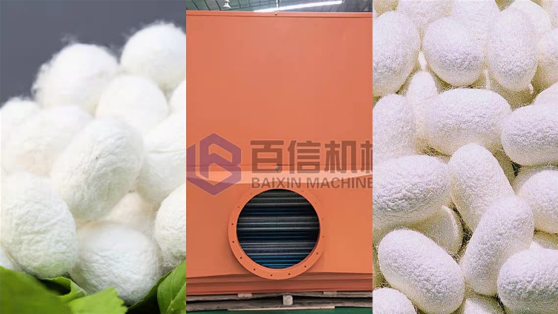 3、蠶繭烘干機設備溫度不能高過65度,否則的話,蠶繭膠質(zhì)硬化,就成為不溶于水的物質(zhì),不大容易出絲了。